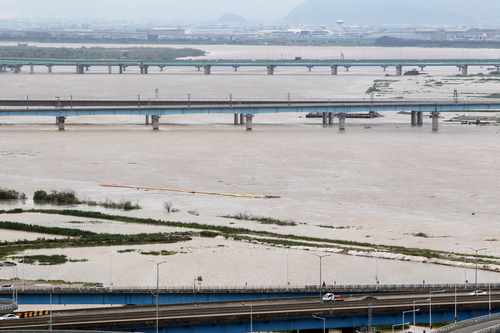 10일 부산 북구 화명동 낙동강살리기 사업 4-5공구 화명강변공원이 불어난 물에 잠겨 있다. ⓒ연합뉴스