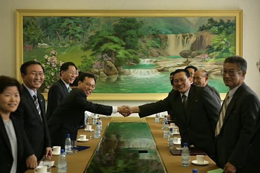 조선사회민주당과 공식회담에 앞서 양당 협상대표단간에 수인사를 나누고 있다. ⓒ민주노동당