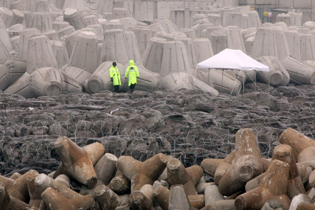 해군기지 시공사측은 앞선 지난 3일 발파 사전작업으로 화약을 넣을 4.5m 깊이의 바위 구멍을 뚫는 천공작업을 마쳤다.