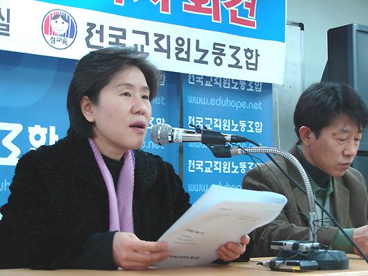 장혜옥 전교조 위원장은 연가 투쟁 참석교사들에 대한 대대적인 징계 방침을 밝히고 있는 김신일 교육부총리를 직권남용 혐의로 형사고발하겠다고 밝혔다. 그러면서도 오는 12월 6일 이전까지 교육부와 전교조 간 교육현안 관련 '언론 공개 토론회'를 제안했다. ⓒ김동현 기자