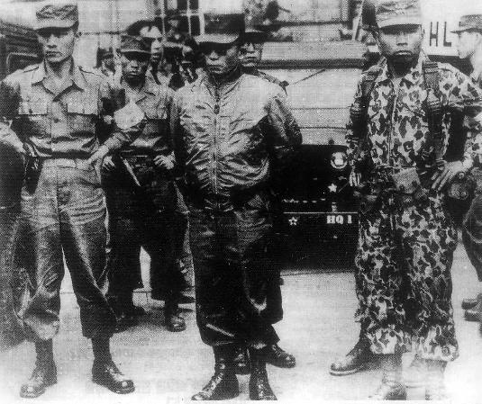 쿠데타 직후인 60년 5월 18일 육사생도의 5.16쿠데타 시위를 지켜보는 박정희 소장. ⓒ연합뉴스