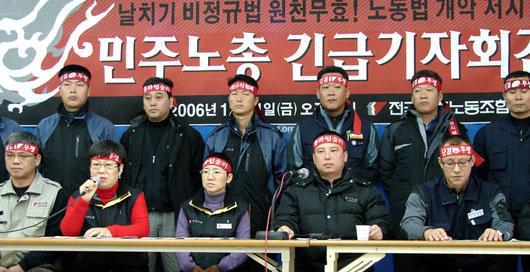 특히 2년여를 끌어온 비정규직법안 통과와 노사로드맵의 국회 심의, 지지부진한 특수고용노동자 보호입법 등 지난 몇 년간 쌓여온 노동계의 현안이 한꺼번에 폭발하면서 노정 갈등이 본격적인 동투(冬鬪)국면으로 접어들고 있다.