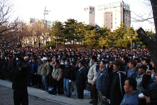 현재 1100여명의 화물연대 조합원들은 서울 농성거점인 영등포 중마루공원에 대기하며 노사 합의결과를 기다리고 있다.