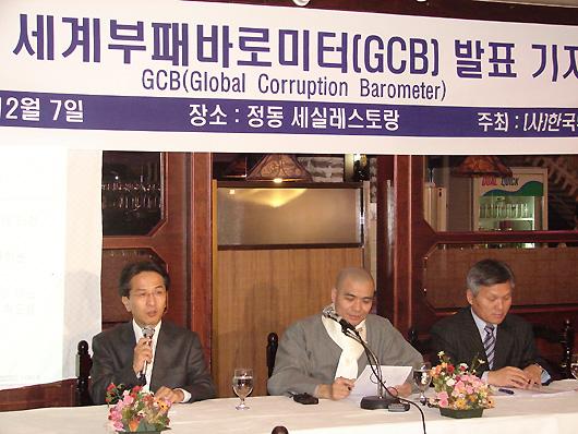 국제투명성기구(TI)는 한국시각으로 7일 오후 6시 전세계 1백62개국에서 동시에 '2006년 GCB'결과를 발표했다. 사진은 한국투명성기구가 TI를 대신해 한국에서 결과를 발표하는 모습. ⓒ김동현 기자