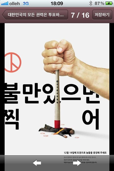 새누리당이 공개한 카톡 화면에 따르면, 이 투표 독려 홍보물에는 "불만 있으면 찍어"라는 구호와 함께 기표 도장으로 쓰려져있는 사람을 꾹 누르는 장면이 나오고, 아래 쪽에 “12월 19일 도장으로 놈들을 응징해 주세요”라고 적혀있다.